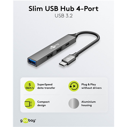 Goobay Slim 4-Port USB Hub, USB-C to USB-C/USB-A, 5 Gbit/s | 74459