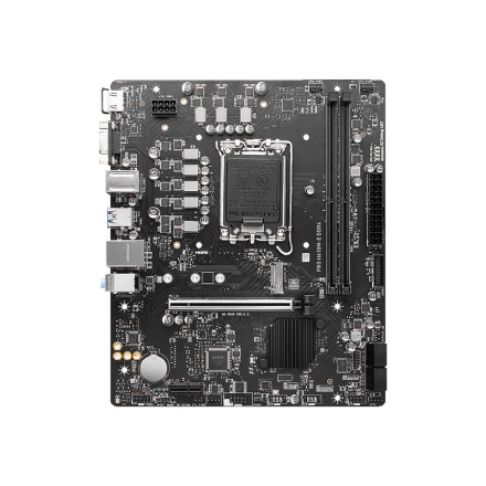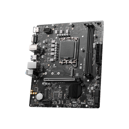 MSI | PRO H610M-E DDR4 | Processor family Intel | Processor socket LGA1700 | DDR4 DIMM | Memory slots 2 | Supported hard disk drive interfaces SATA, M.2 | Number of SATA connectors 4 | Chipset Intel H610 | Mirco-ATX